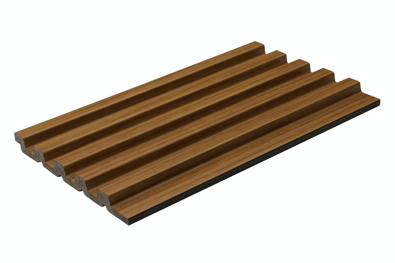 חיפוי דמוי עץ בגוון חום כהה עם חריצים מודגשים.