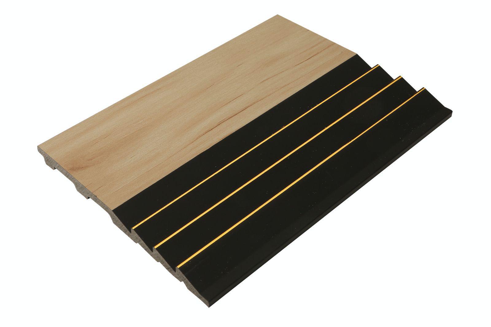 חיפוי משולב עץ ושחור מט עם פסים זהובים.