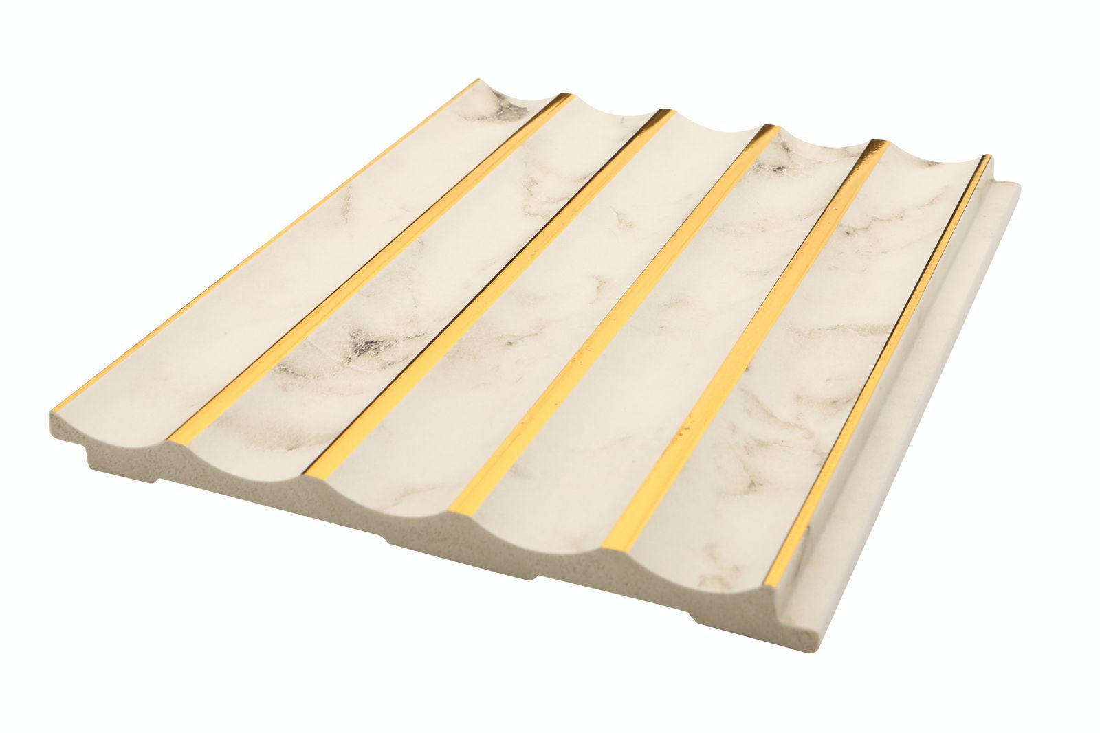 חיפוי גלי דמוי שיש עם פסים זהובים.