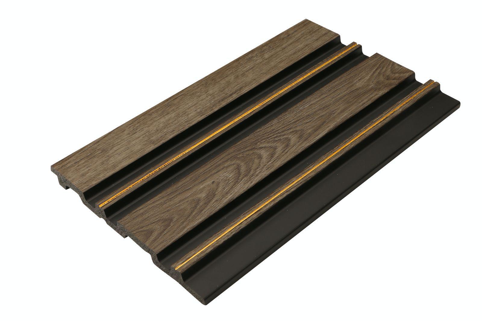 חיפוי דמוי עץ בגוון חום כהה עם עיצוב זהוב.
