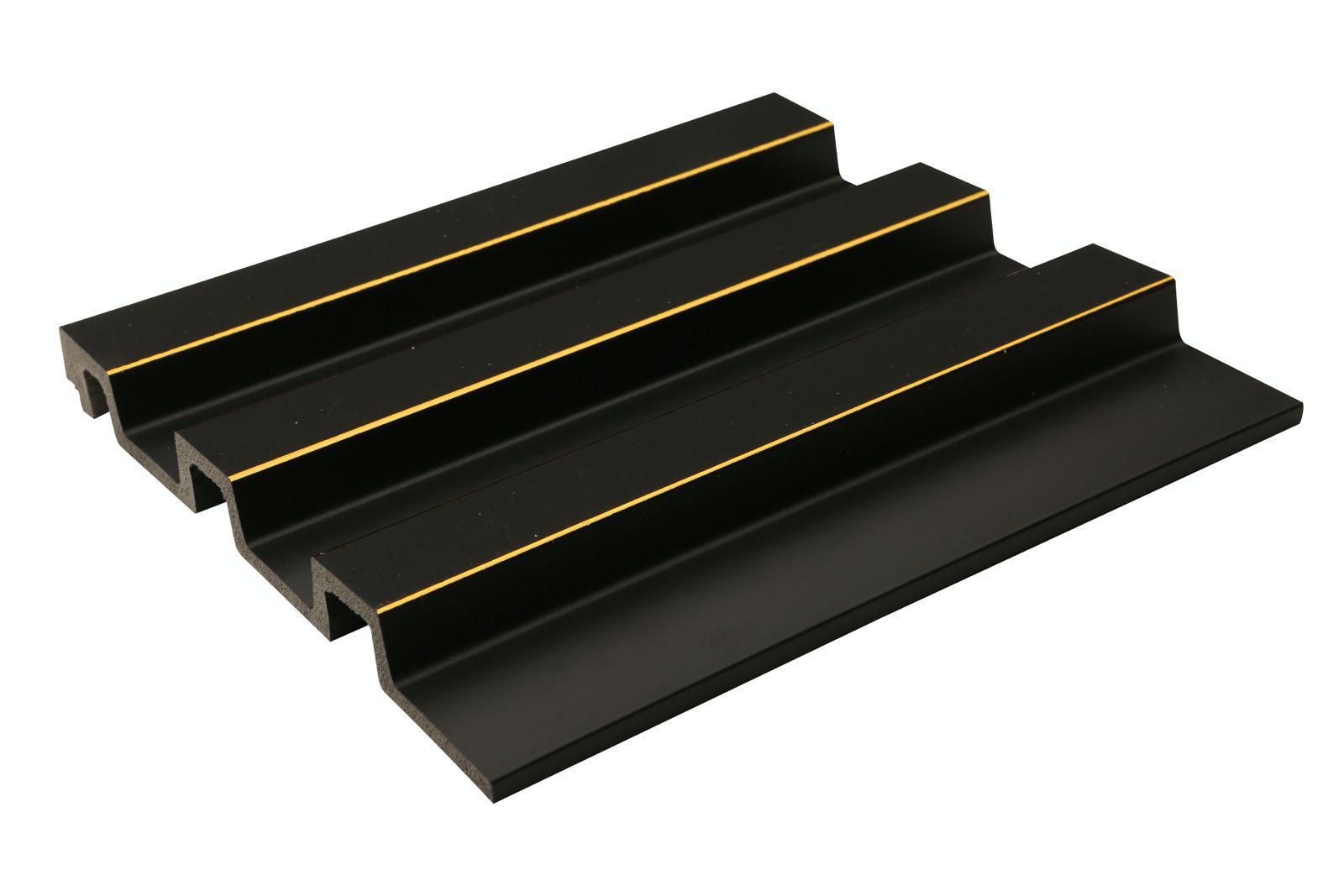 חיפוי בגוון שחור מט, דמוי עץ עדין עם פסי הדגשה זהובים