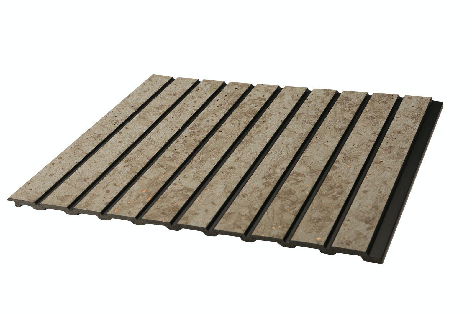 חיפוי רחב בגוון עץ טבעי אפור עם ניצוץ, בסיס שחור.
